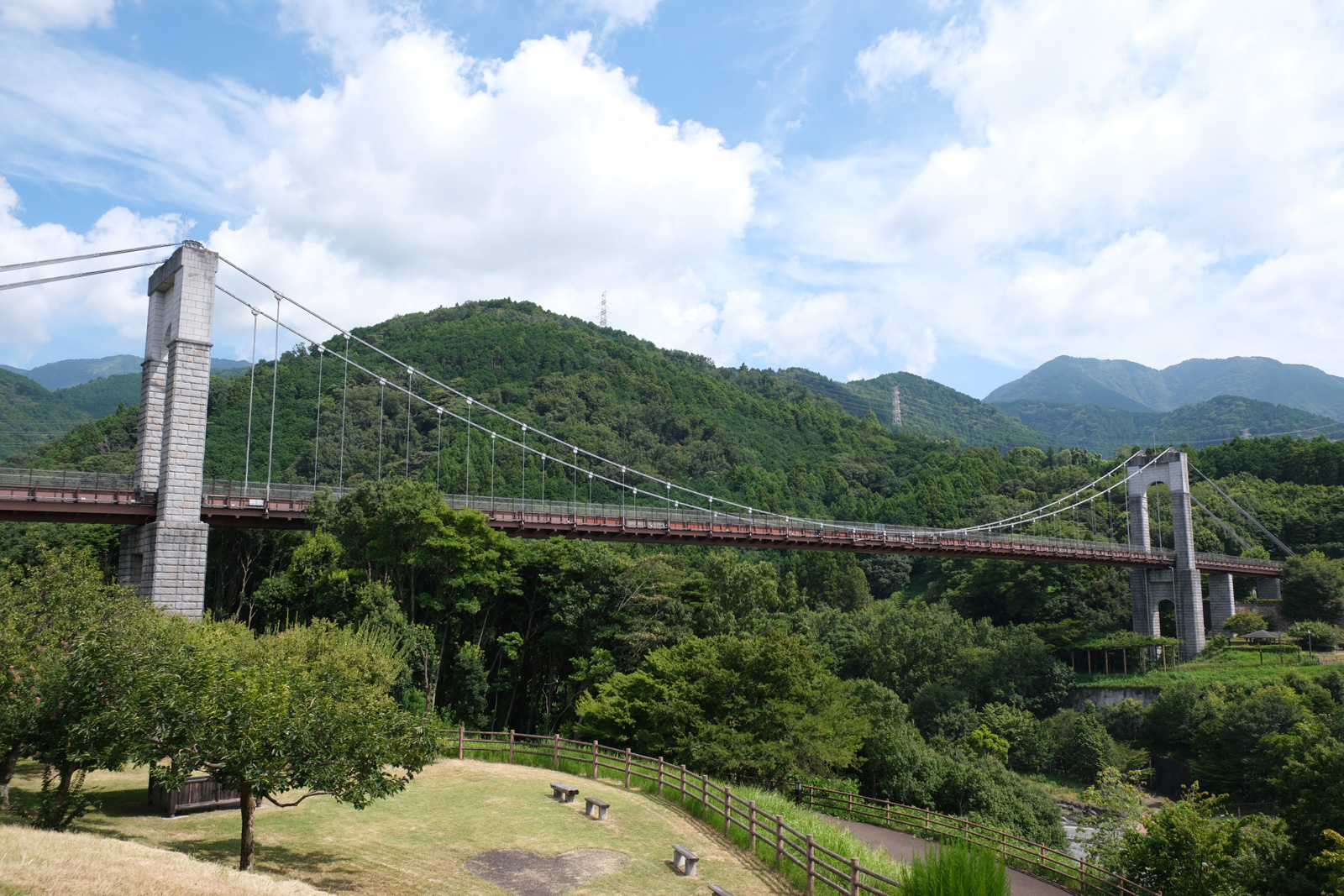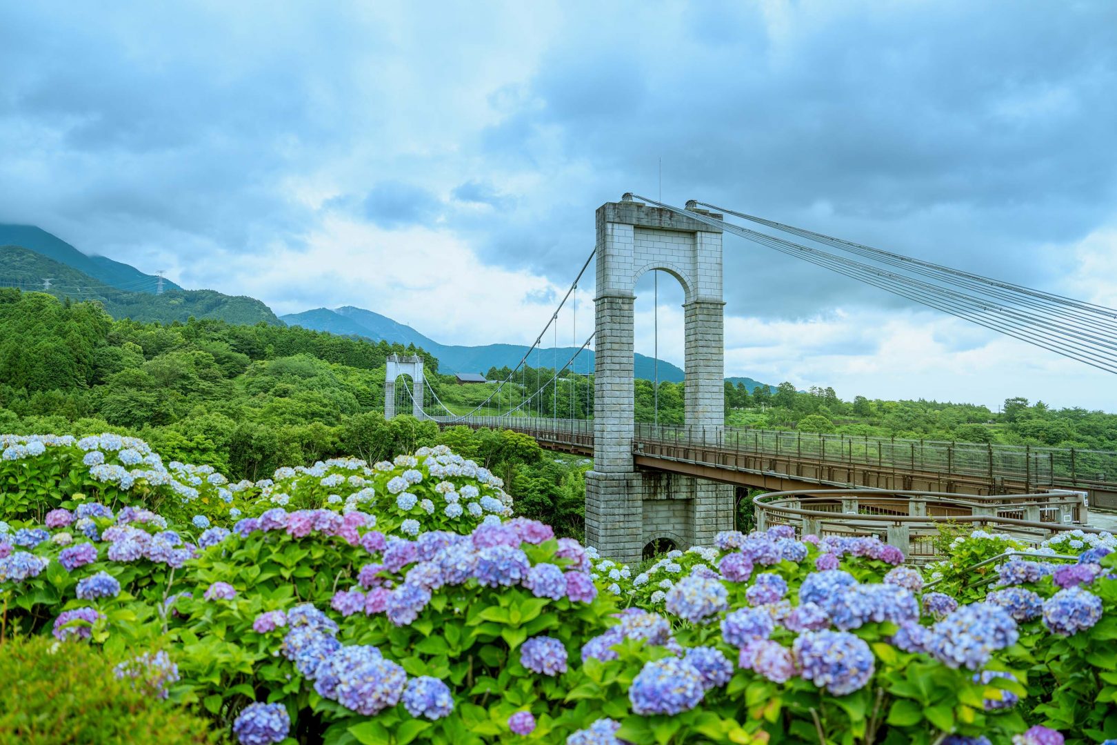 秦野戸川公園のランドマークとして親しまれている風の吊り橋は、全長267mもの長さのある大きな吊り橋です。歩行専用の橋で、揺れはほとんどありません。4mもの幅がある橋の上からは、大山を含む表丹沢の山々が見渡せ、足元には水無川、そして南側には盆地の秦野の街も望むことができます。
