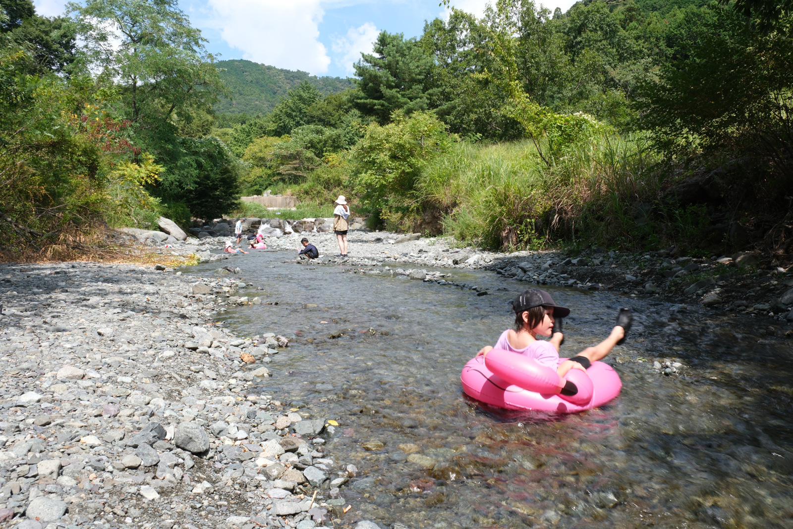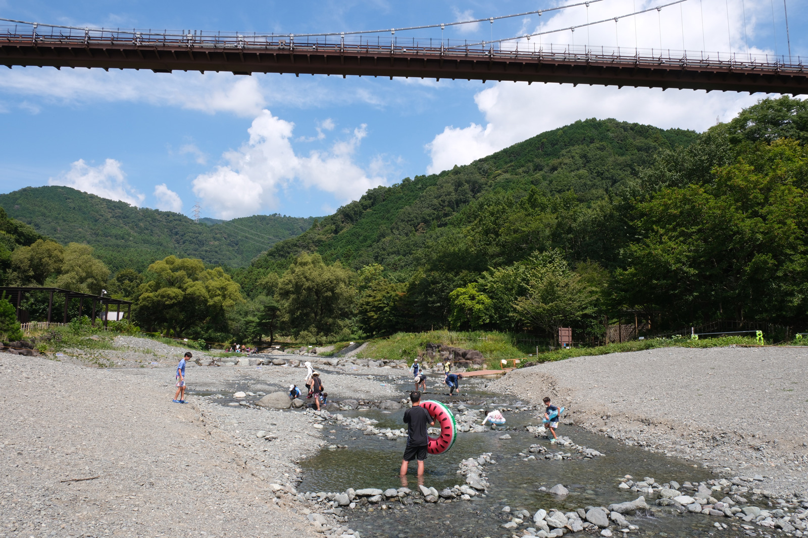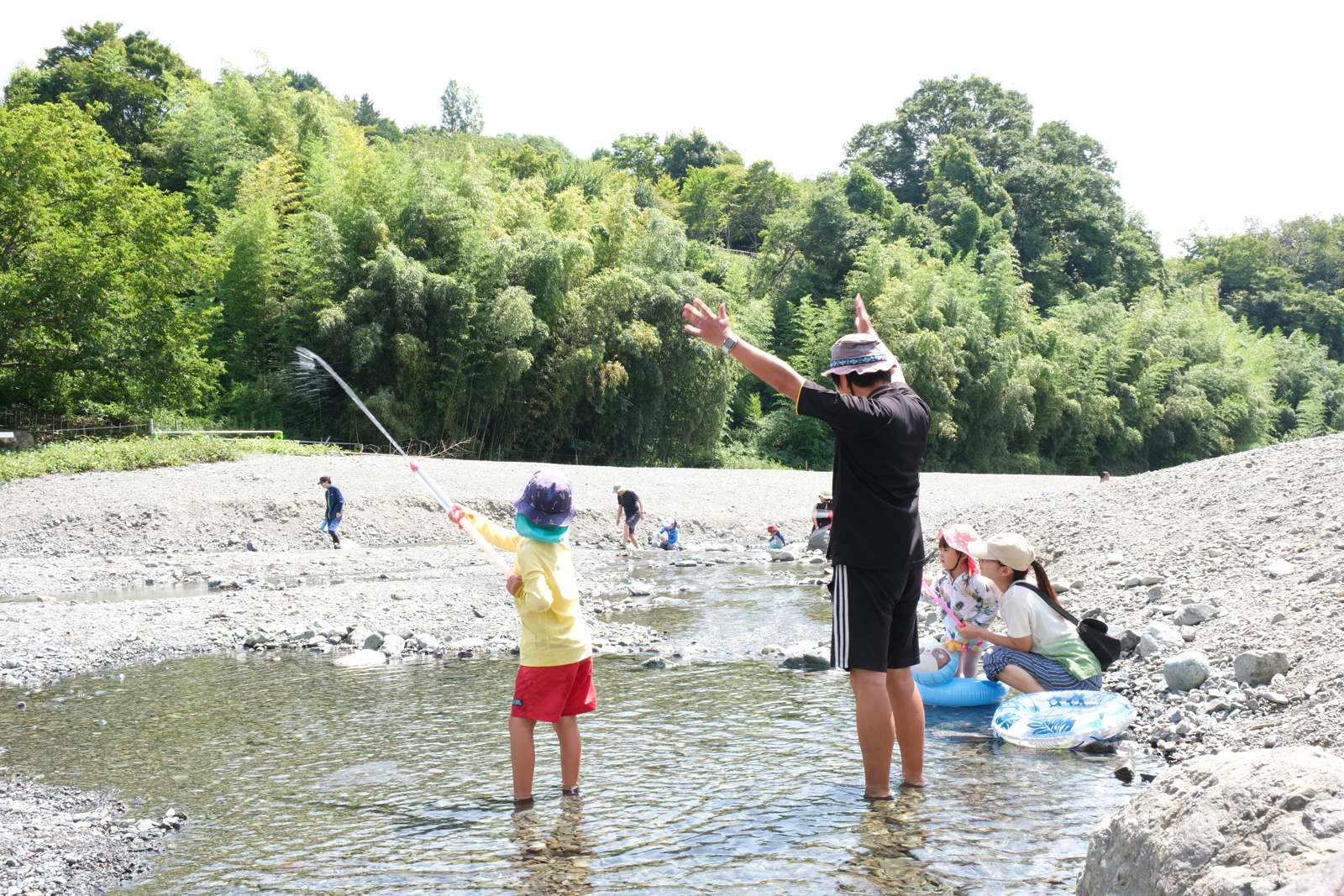 風の吊り橋よりも上流は、比較的水量が多く、川に慣れたお子さまの絶好の遊び場になっています。海遊びも楽しいですが、潮や砂のべた付きがない川遊びは、身体を動かしながら、さっぱりとした自然の気持ちのよさを感じることができますね。水無川での楽しいひと時は、お子さまたちの思い出にしっかりと刻まれることでしょう。