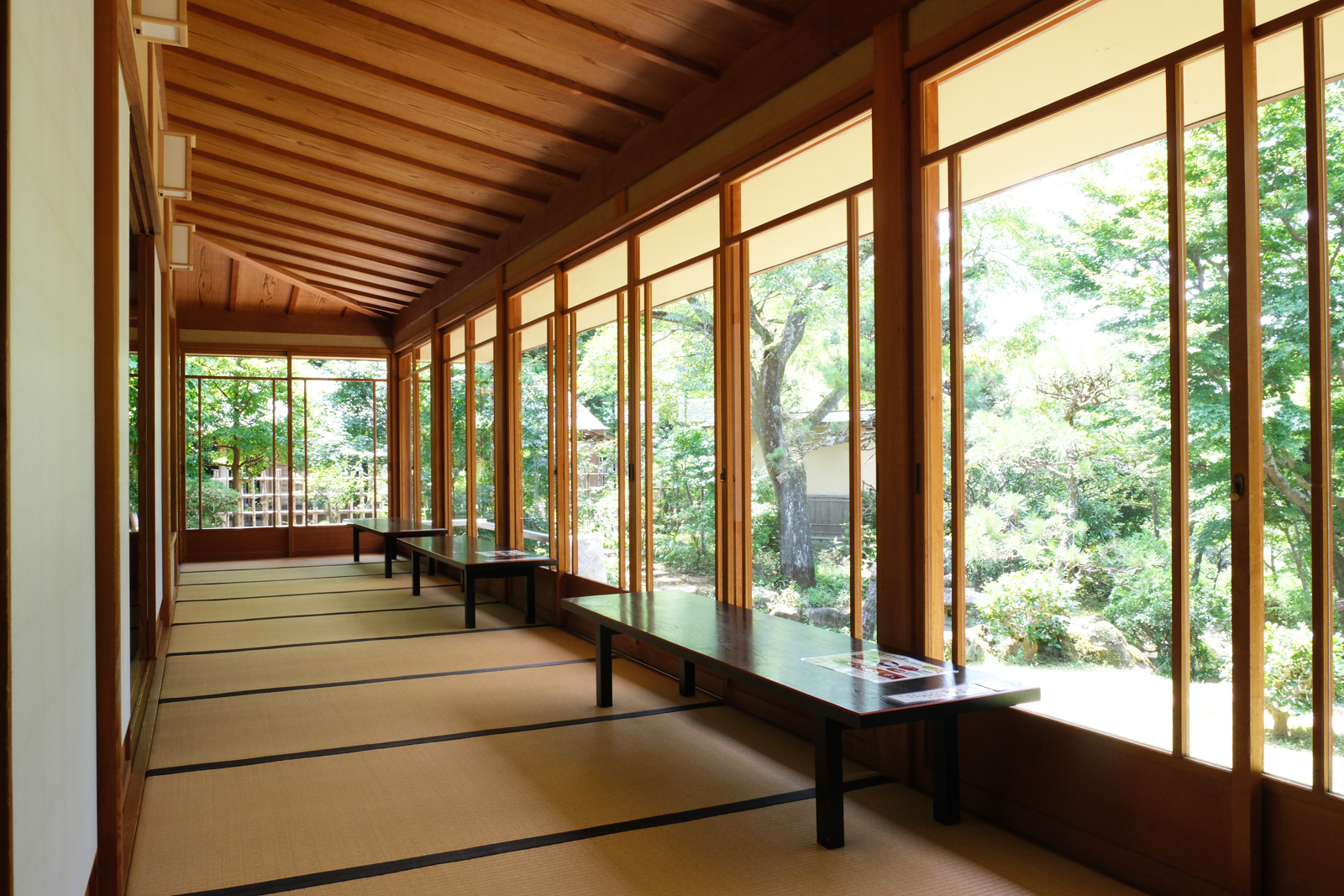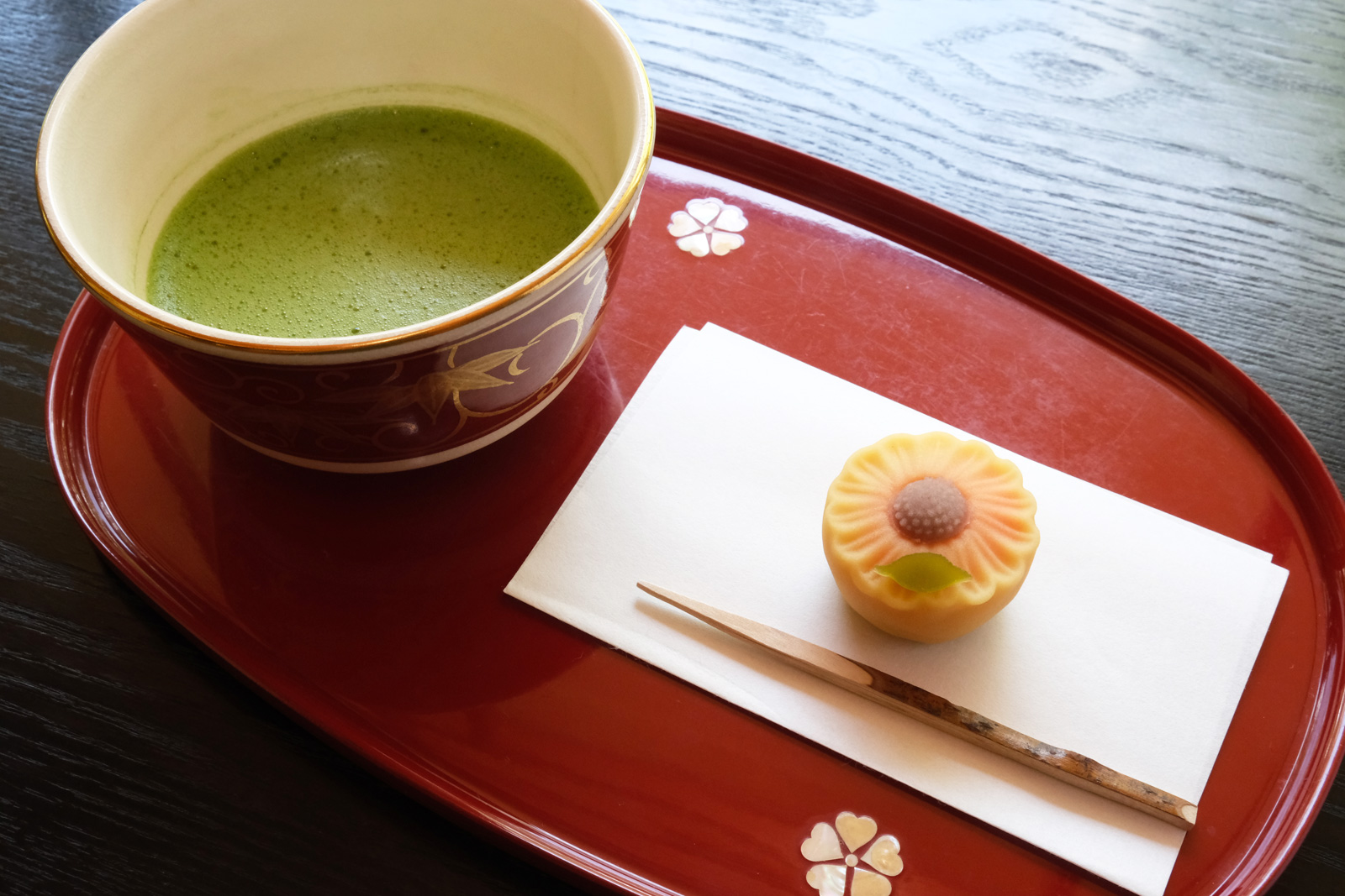 休憩所には、土間部分のベンチ席と畳敷きの客席が用意され、本格的なお抹茶だけでなく、コーヒーやオレンジジュースなどもオーダーすることができます。お抹茶に付く、美しい主菓子(おもがし)は、季節ごとに変わるのだそう。冬から春にかけては、水仙や梅などの花、秋にはもみじが染まる景色も見える、この落ち着いた空間で、茶を喫する贅沢な時間を過ごしてはいかがでしょうか。