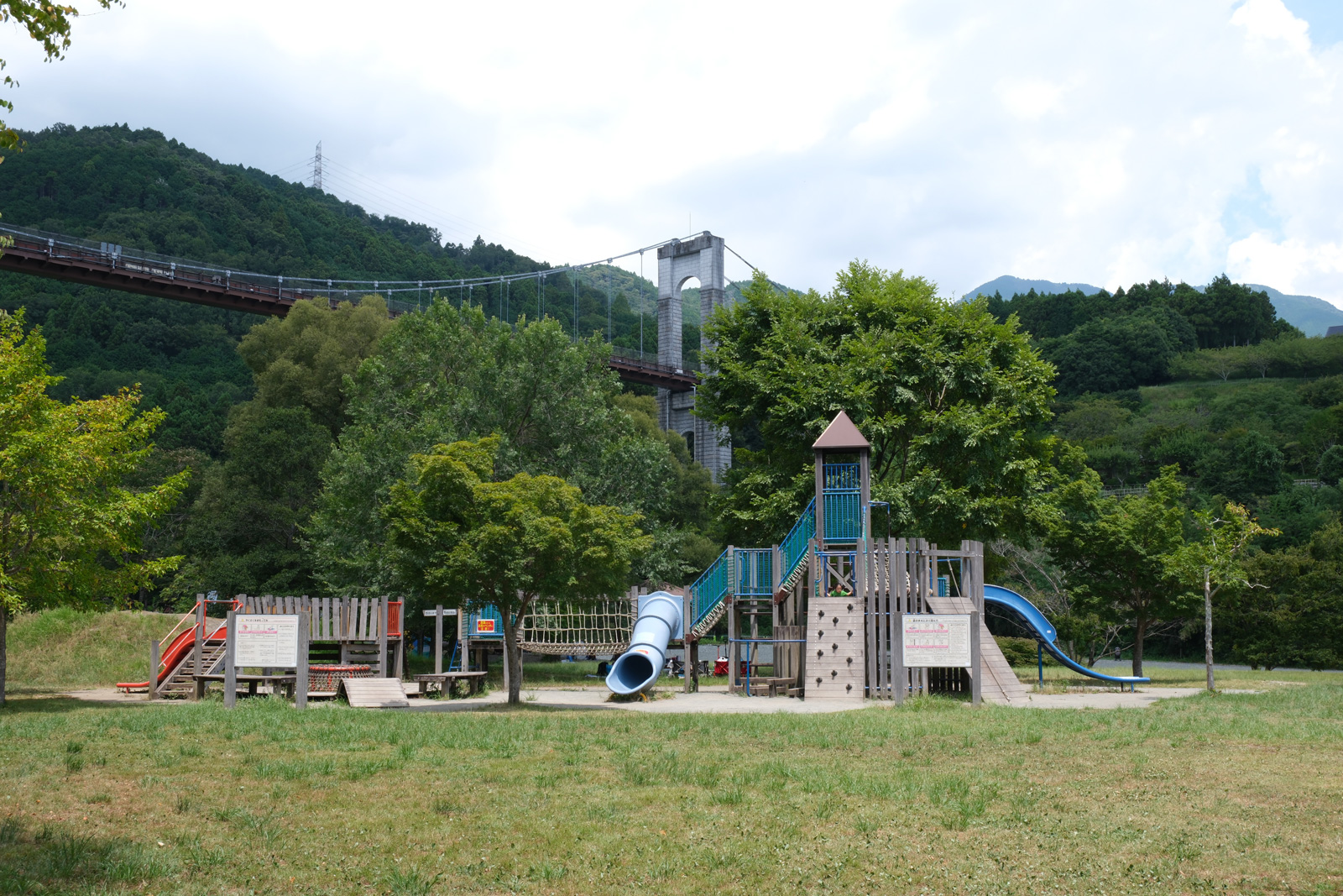 丹沢の山から流れる水無川の両岸に、緑豊かな秦野戸川公園が広がります。ランドマークは両岸をつなぐ「風の吊り橋」。ひと時も休まず駆け回るキッズはもちろん、園内はバリアフリー対応で車椅子の貸し出しもあり、幅広い世代が楽しめる都市公園です。