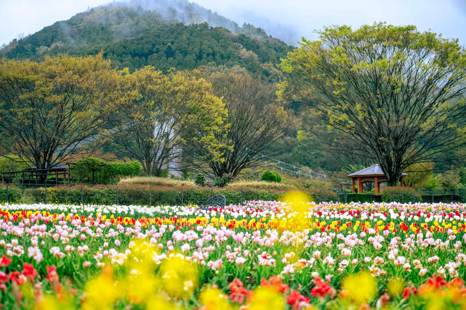 春 梅、河津桜、ソメイヨシノ、八重桜、チューリップ(5万本)など