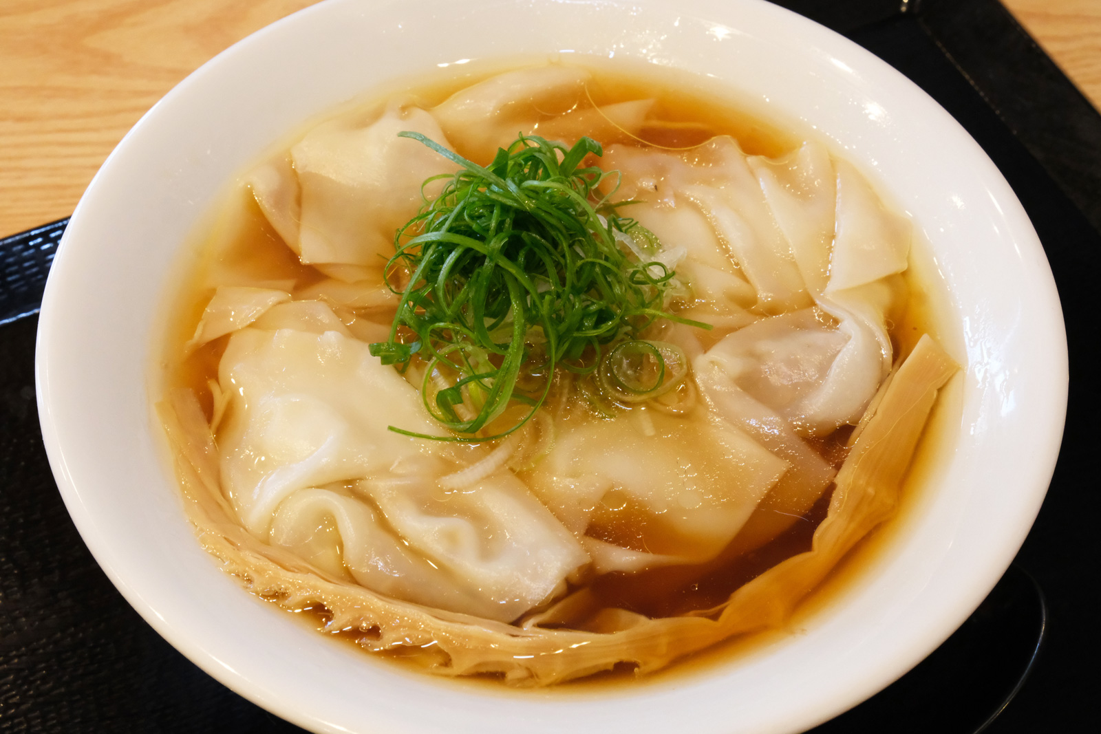 具は、ワンタンとメンマとネギという潔さ。たっぷりのワンタンの下には、国産小麦「春よ恋」をブレンドして打たれた麺が隠れています。小麦の香りと旨味を感じる細めの麺は、醤油スープとの相性も抜群。塩ラーメンと醤油味の中華そばで麺を使い分けている点にもこだわりを感じます。