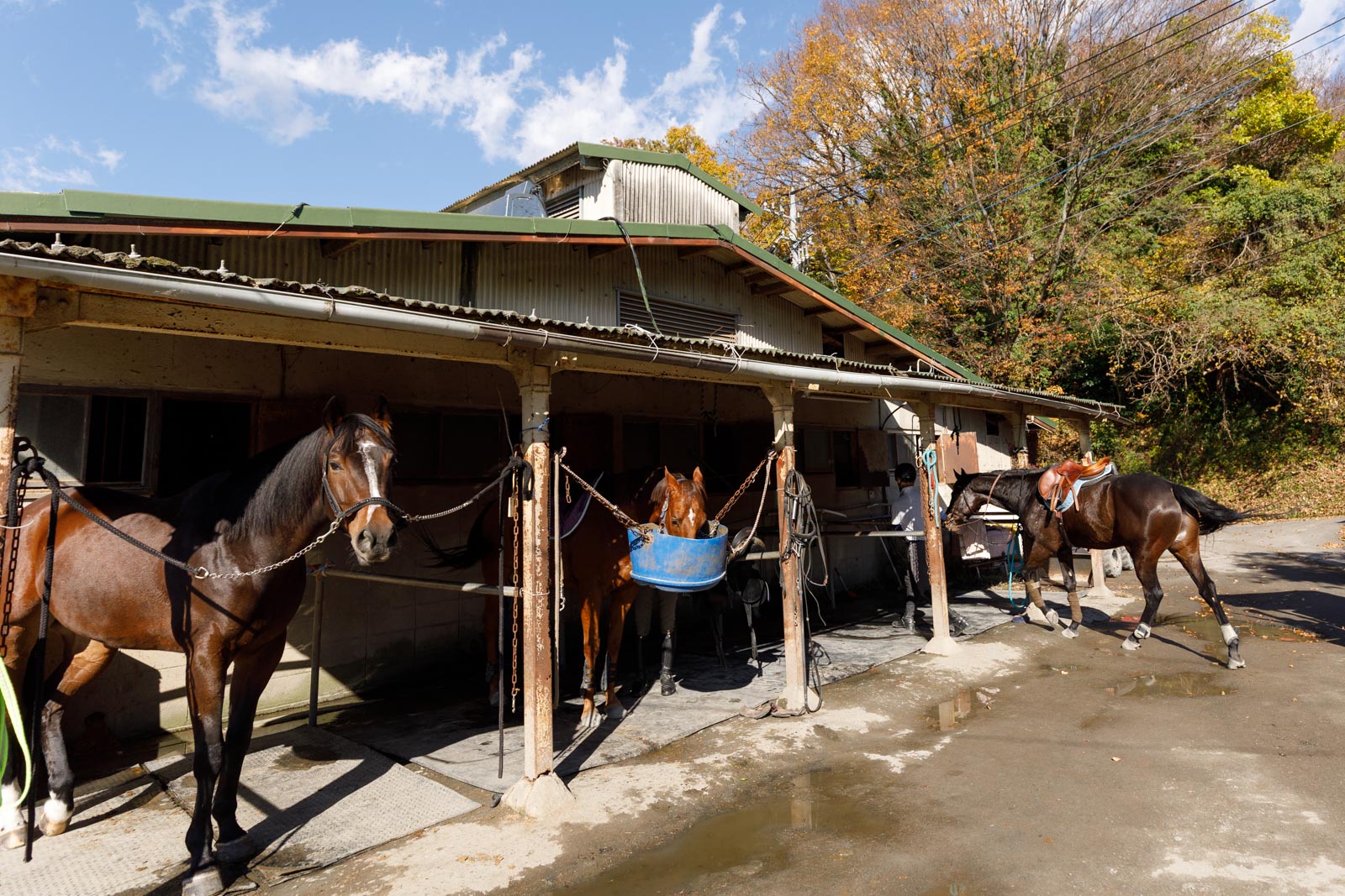 「秦野国際乗馬クラブ」では、30頭ほどの馬がのびのびと暮らしています。その顔ぶれは、4~5歳の若い馬から24~25歳の経験豊かなベテランまで、実に多彩。競走馬を引退してここにやってきた馬も多いといいます。ちなみに、競走馬から乗用馬として再調教するのに、通常で半年から1年、気性が荒い馬の場合だと1〜2年ほど要するのだとか。