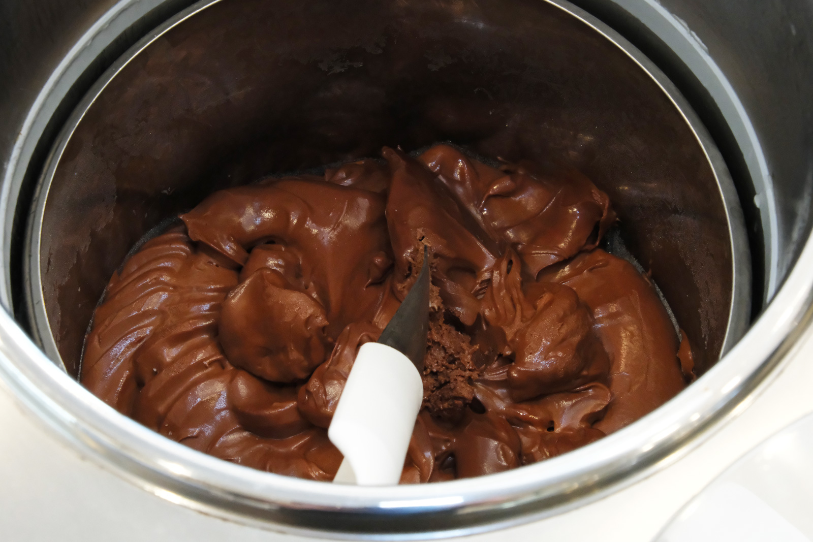 シルバーの丸い蓋を持ち上げると、店舗奥の工房で製造された新鮮なジェラートが出番を待っています。常時28種類もある個性豊かなジェラートは、すべて肥田野シェフ自ら素材の加工から商品になるまで工房で製造しています。