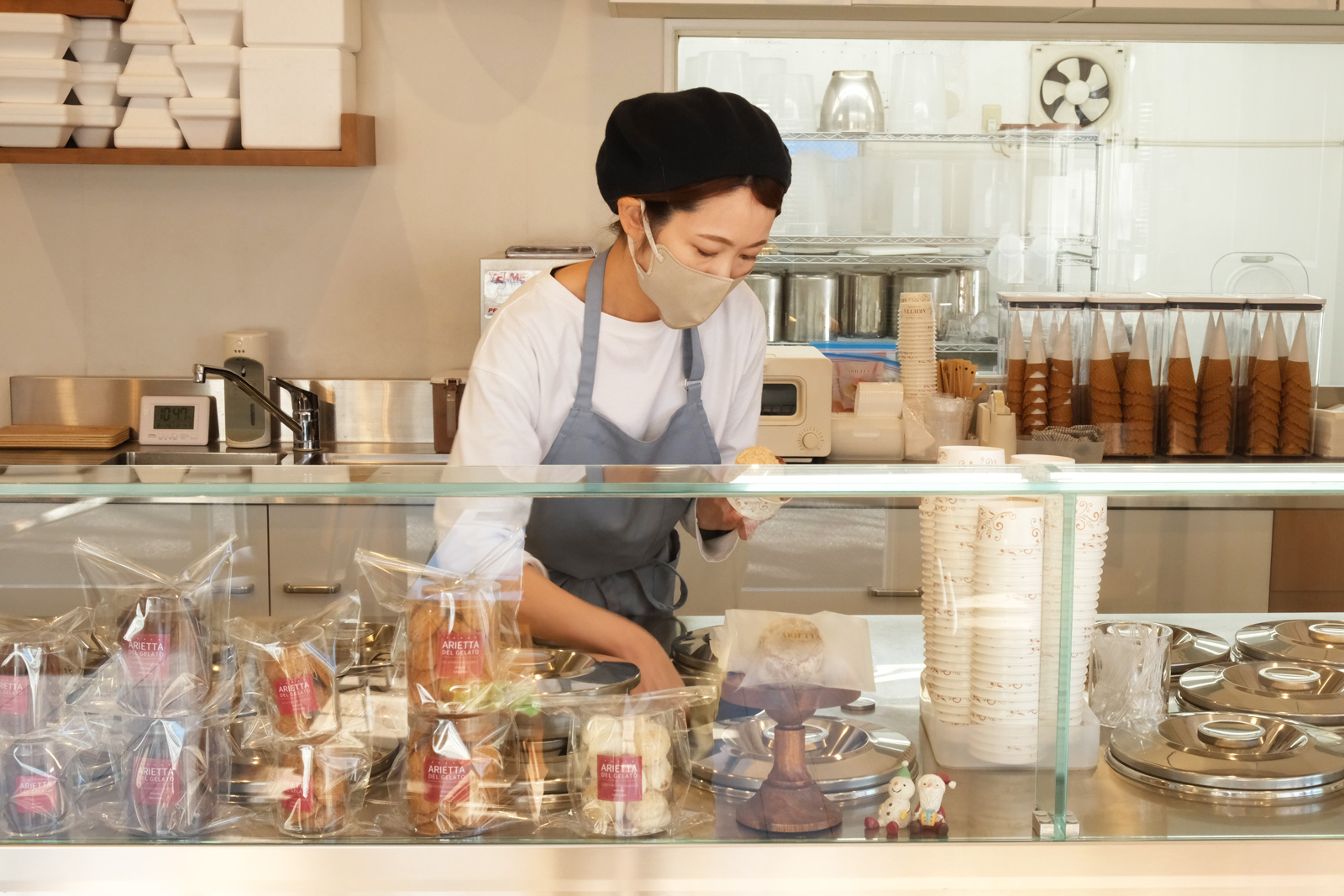 「イタリアで修行していたお店が、毎日28種類製造販売しているジェラテリアだったんです。それに倣って、自分のお店でもと想い、アリエッタでも日々28種類を製造し、販売しています」と肥田野さん。
