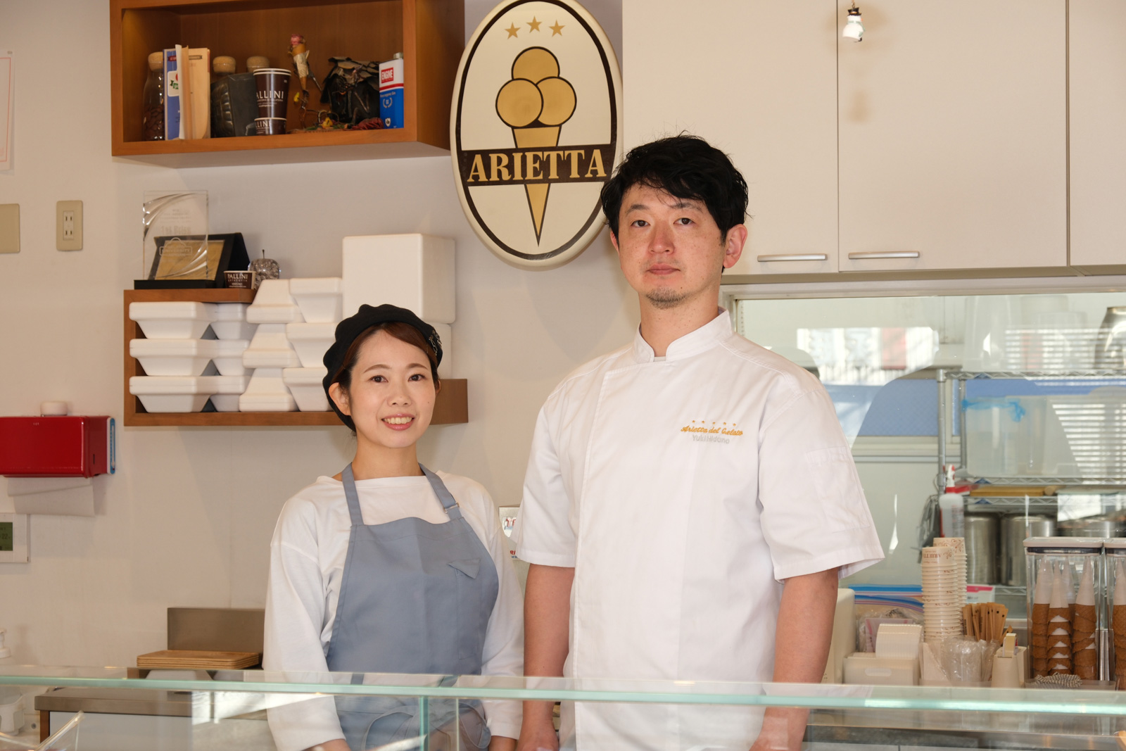 ある日、肥田野さんが市場で見つけた桃でジェラートを作った時のこと。試食した店主は、一瞬厳しいしぐさを見せた直後、こう言ったそうです。「Arrivata arietta.(そよ風を感じたよ!)」これは「最高だ!」という賛辞でした。それがとても嬉しかった肥田野さんは、「Arietta(アリエッタ=そよ風)」を、店名に掲げることにしました。