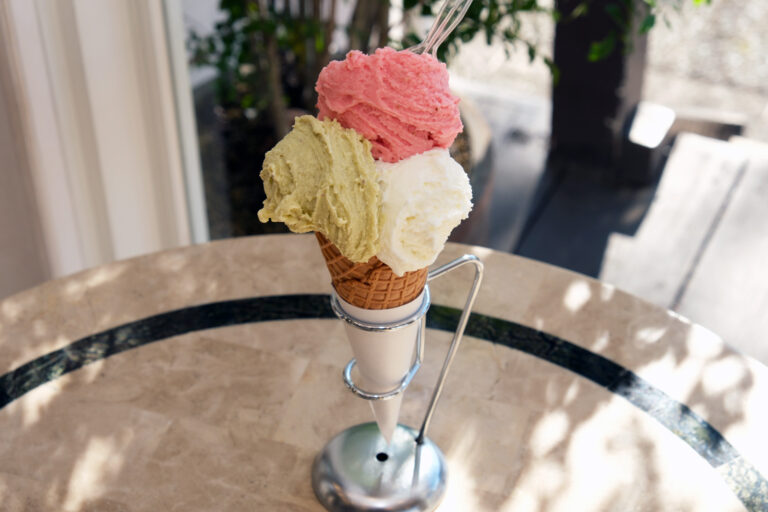 コーン(写真右)は、冬から春までの期間限定「秦野産完熟いちご」、濃厚な「ピスタッキオ」、そして岩手県産牛乳の「ラッテ」の3種です。イタリア国旗のような鮮やかな彩りが気分を上げてくれます。フレッシュな苺の酸味、ローストされたピスタチオのコク、そしてシンプルゆえに技術が光るミルクの甘み。 食べ終える頃には、思わず「次はどれを食べようかな」と考えてしまうはずです。