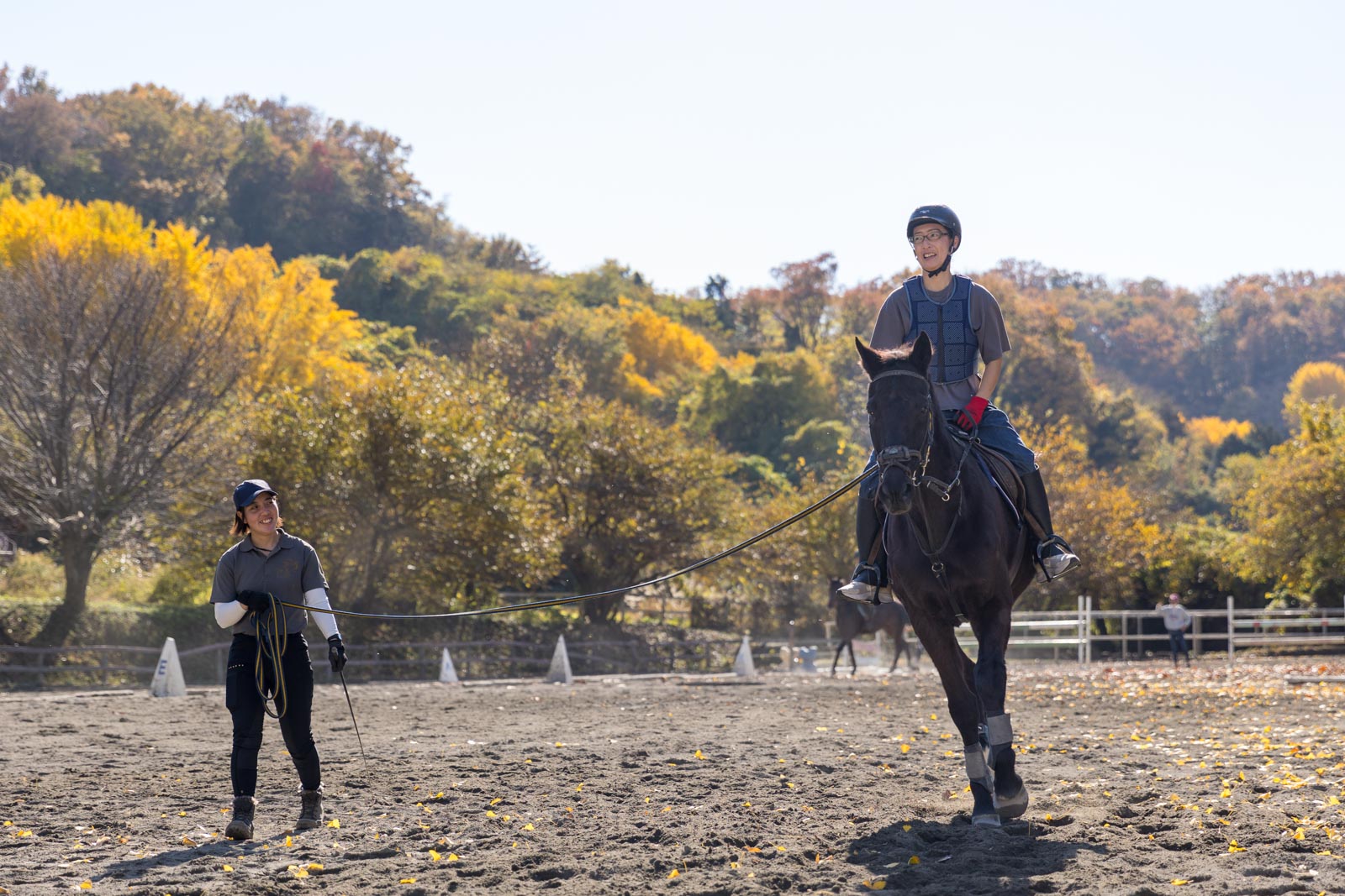 「速く走ることを目標にトレーニングしてきた競走馬が、落ち着いてゆっくり歩くようになるためには、時間をかけて練習する必要があるんです」と、インストラクターの小林さんが教えてくれました。