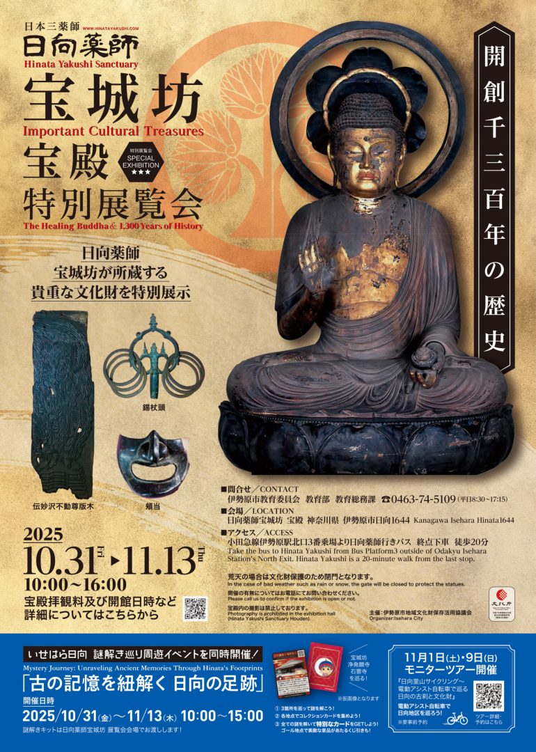 開創1300年の歴史を持つ日向薬師宝城坊では所蔵する文化財を集めた特別展示イベント「日向薬師宝城坊 宝殿 特別展覧会」が開催されます。