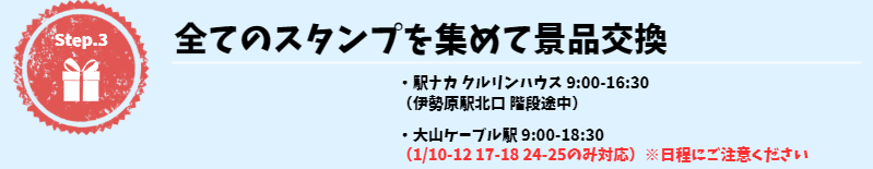 ●大山ケーブル駅(窓口横の売店)9:00~18:30 ※ 1月10日~12日、17~18日、24~25日のみ対応