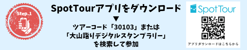 「大山詣りデジタルスタンプラリー」に参加するためには、「SpotTour」アプリをダウンロードする必要があります。