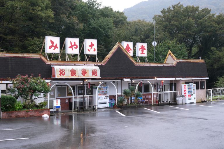大山阿夫利神社下社から石段を降りた先にあるお休み処。昭和の雰囲気が漂う店先には、SNSで話題の「ルーメソ」と読める暖簾がかかっています。名物の大山とうふにそばやうどん、おでんに甘味などメニュー豊富で、参拝客や登山客など訪れる人が後を絶ちません。